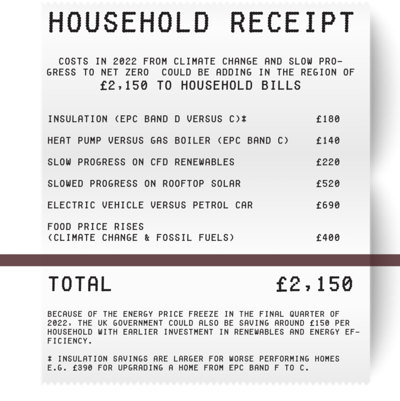 Missed savings and impact of climate and energy costs add up to £2,150 to UK household bills in 2022