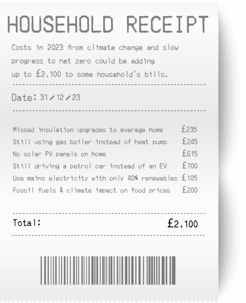 This amounts to a potential £4,350 of costs for some household over two years caused by climate change and the limited roll-out of net zero technologies.