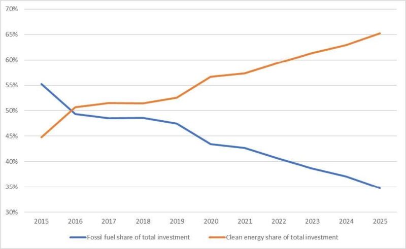 Chart: global investment in fossil fuels and clean energy
