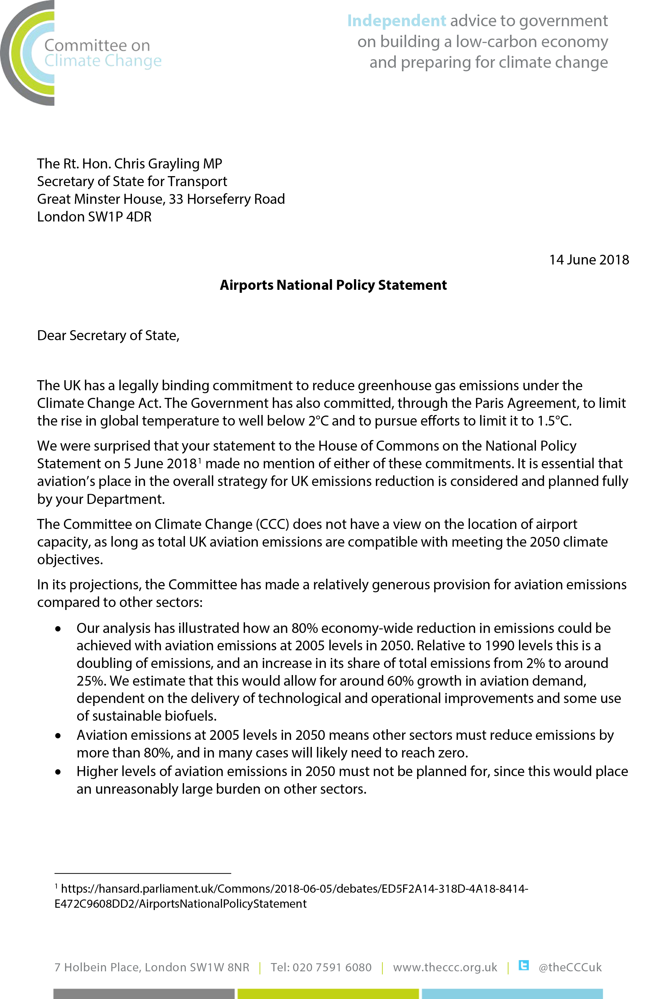 If the Heathrow vote came too late for inclusion in the actual report, one can be fairly sure that the Department for Transport will receive a verbal rollicking – not so much for backing the new runway, but for declining to engage seriously with the climate change aspect of the project. The CCC has already expressed its ‘surprise’ that Mr Grayling failed to mention the Paris Agreement when making a statement to the House earlier this month.